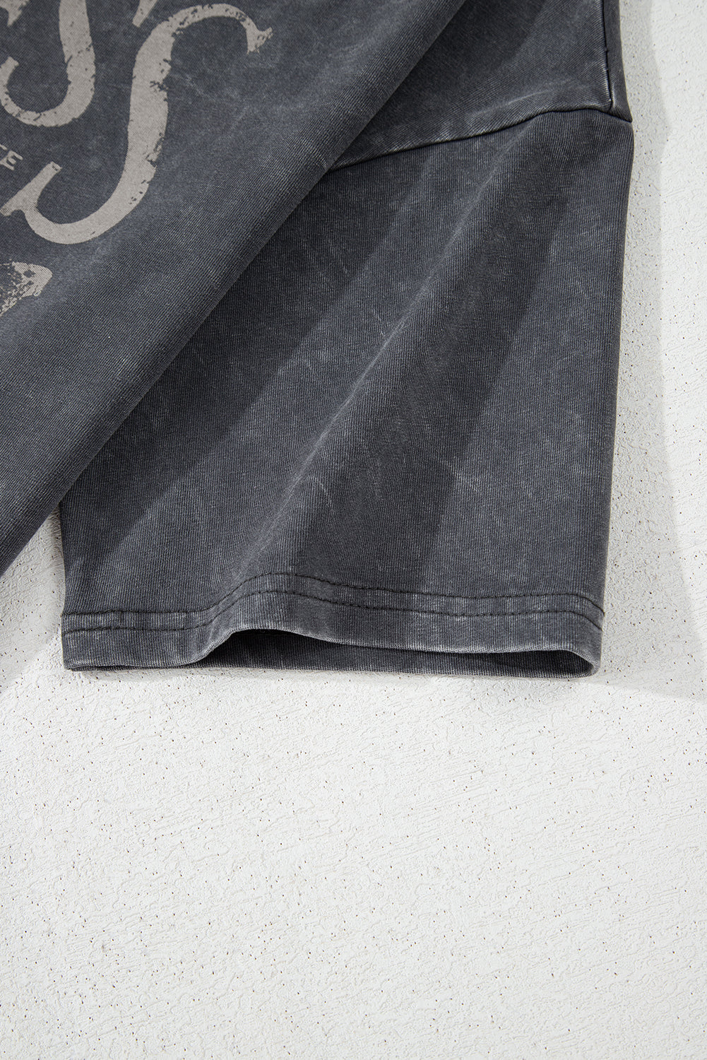 - Embrace comfort and style with this Graphic Mineral Wash Loose Tee, perfect for a casual day out or lounging at home. The mineral wash gives it a unique, lived-in look.