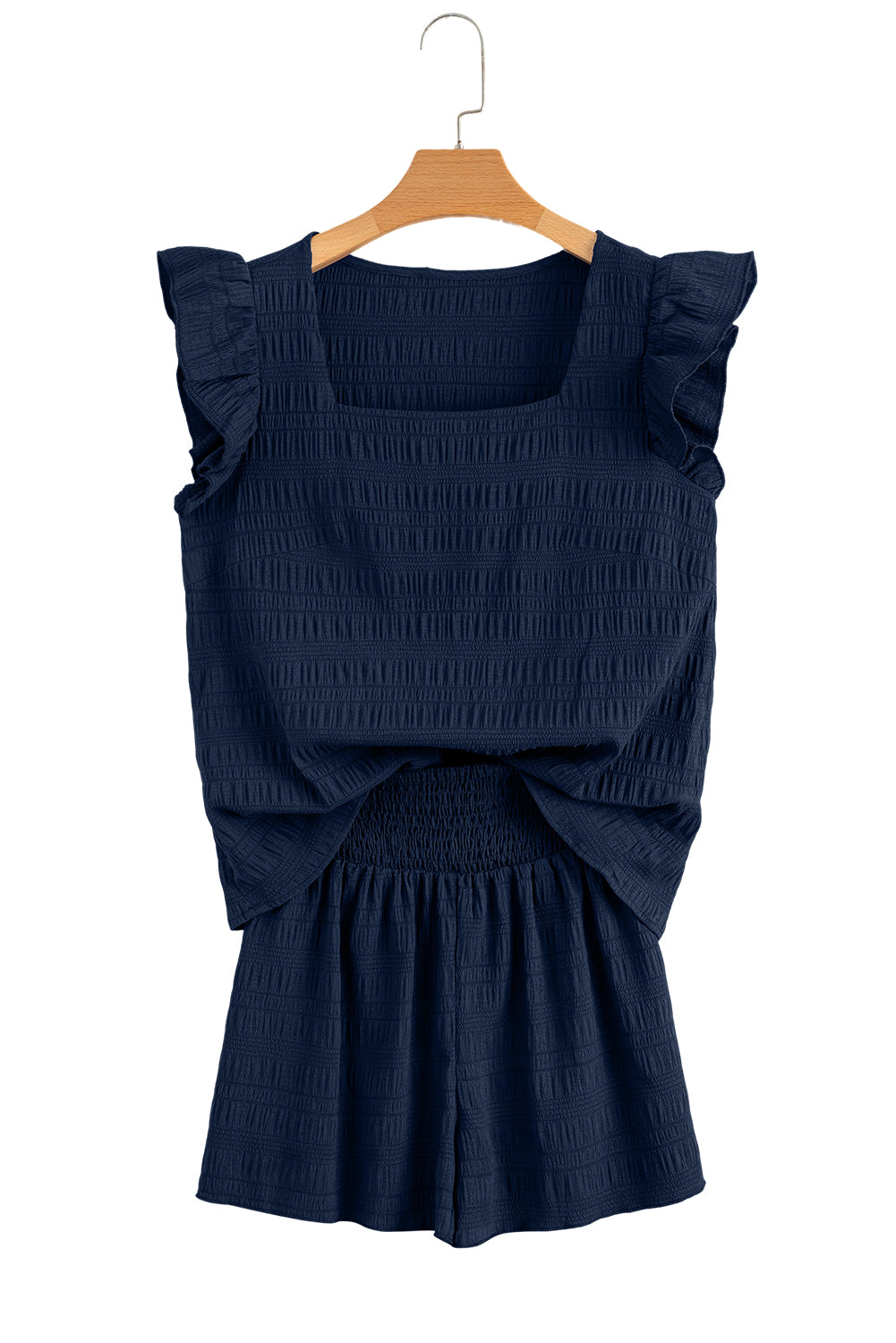 Dirty Blue Ruffle Top and Shirred High Waist Shorts Set