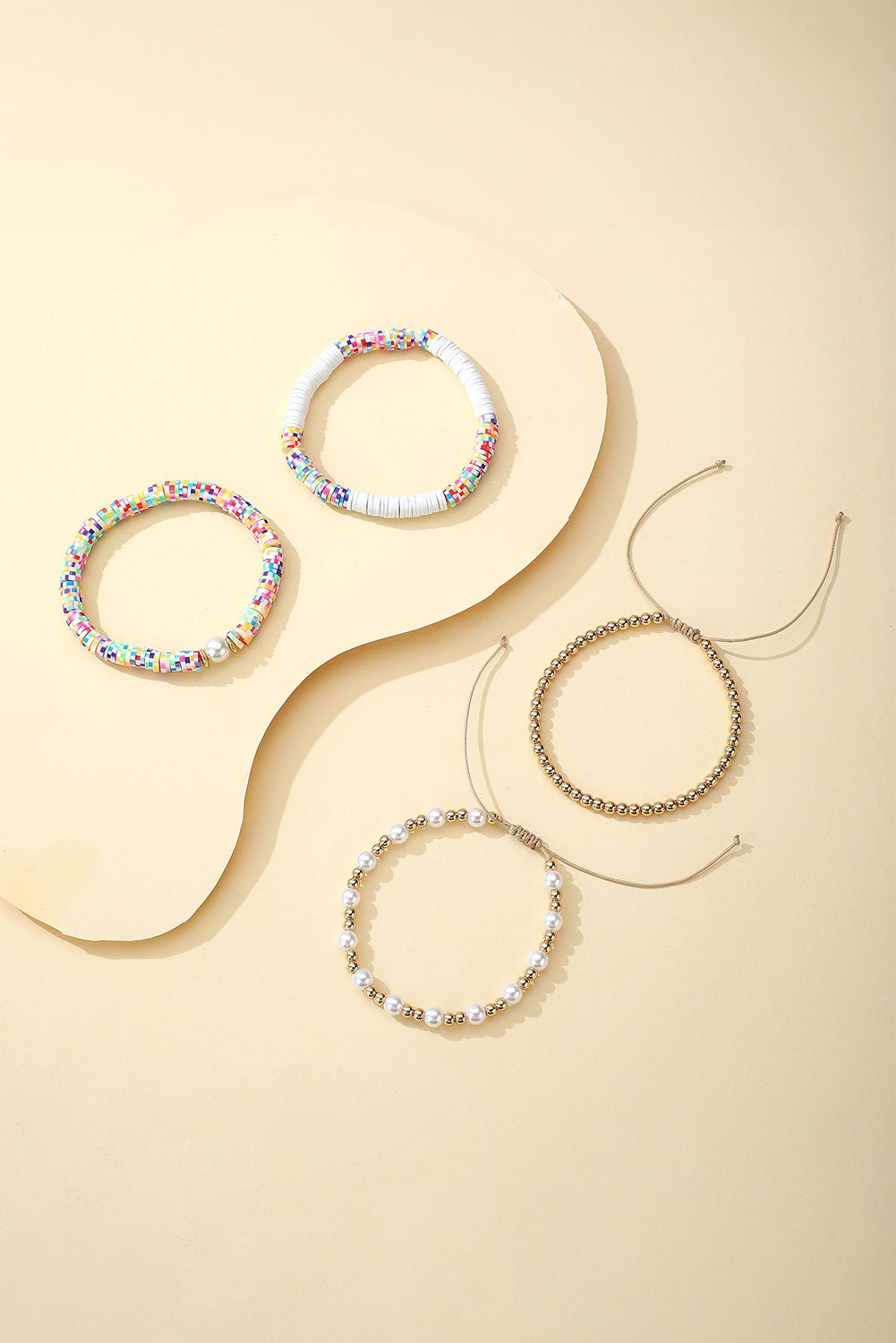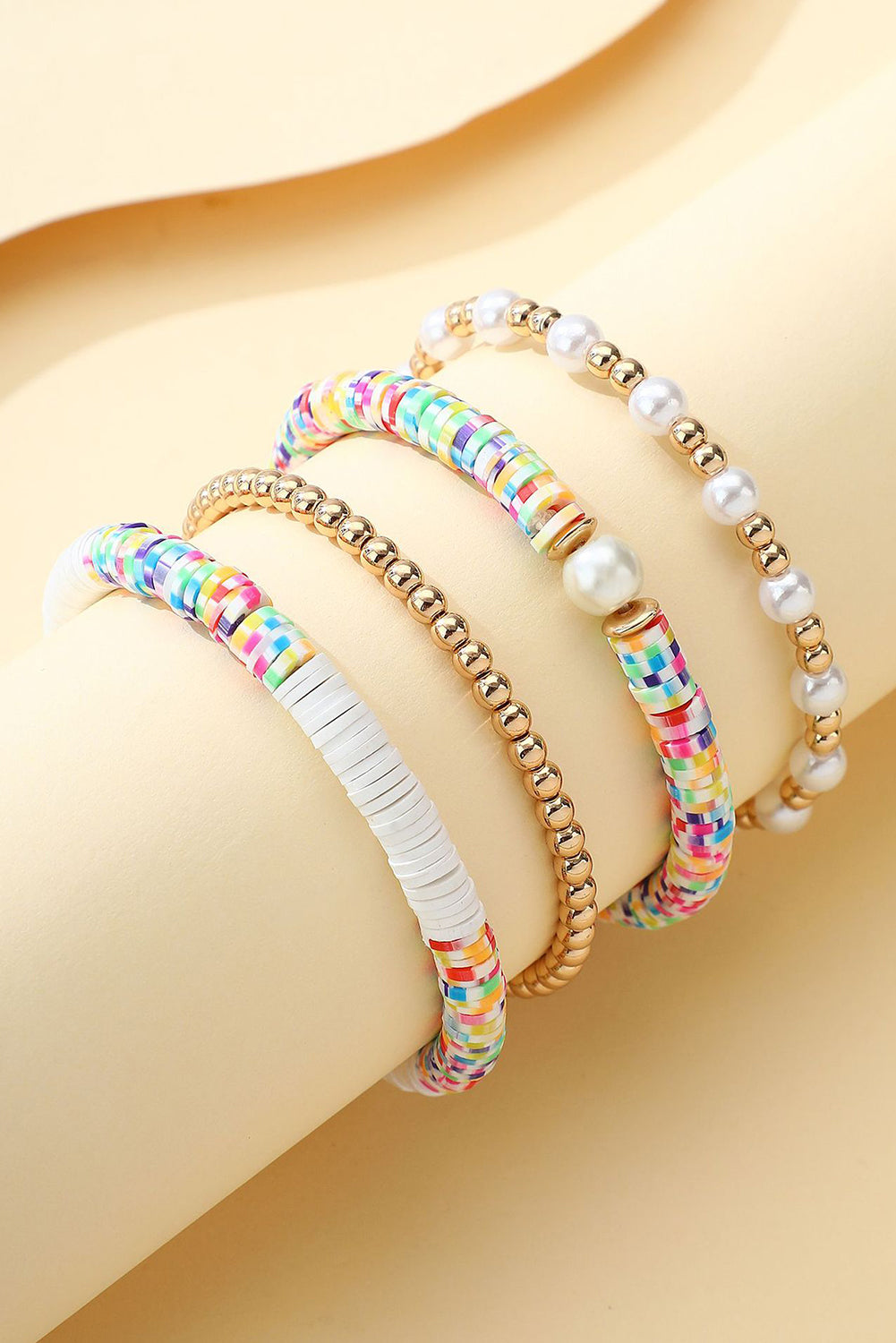 Gold Pearl Colorful Stackable Bracelet Set