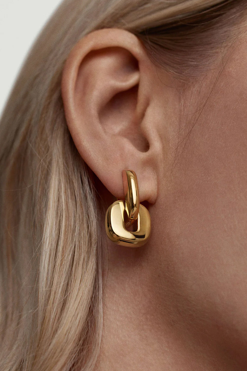 - The intricate geometric design of these dangle hoop earrings adds a modern twist to a classic style.