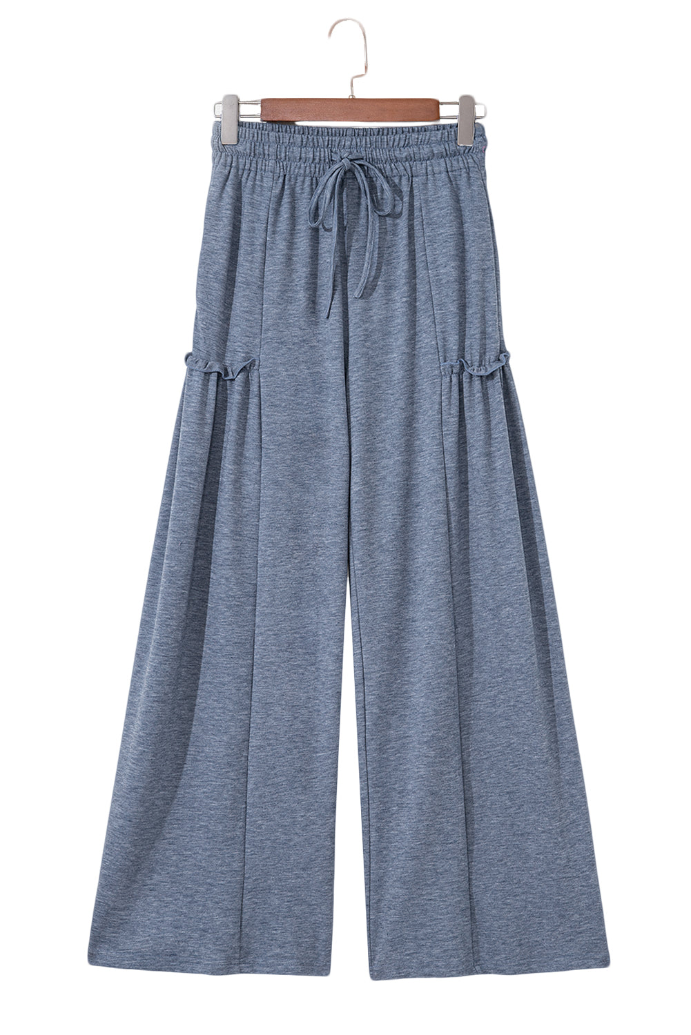 - Elevate your casual look with these wide-leg pants featuring a stylish frill detail at the hem, adding a touch of playfulness to your outfit.