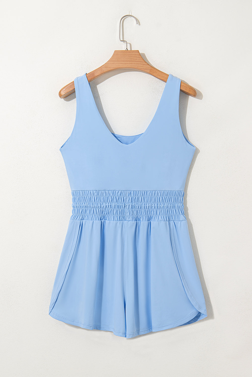 Plain Sleeveless Drawstring Cinched Waist Romper