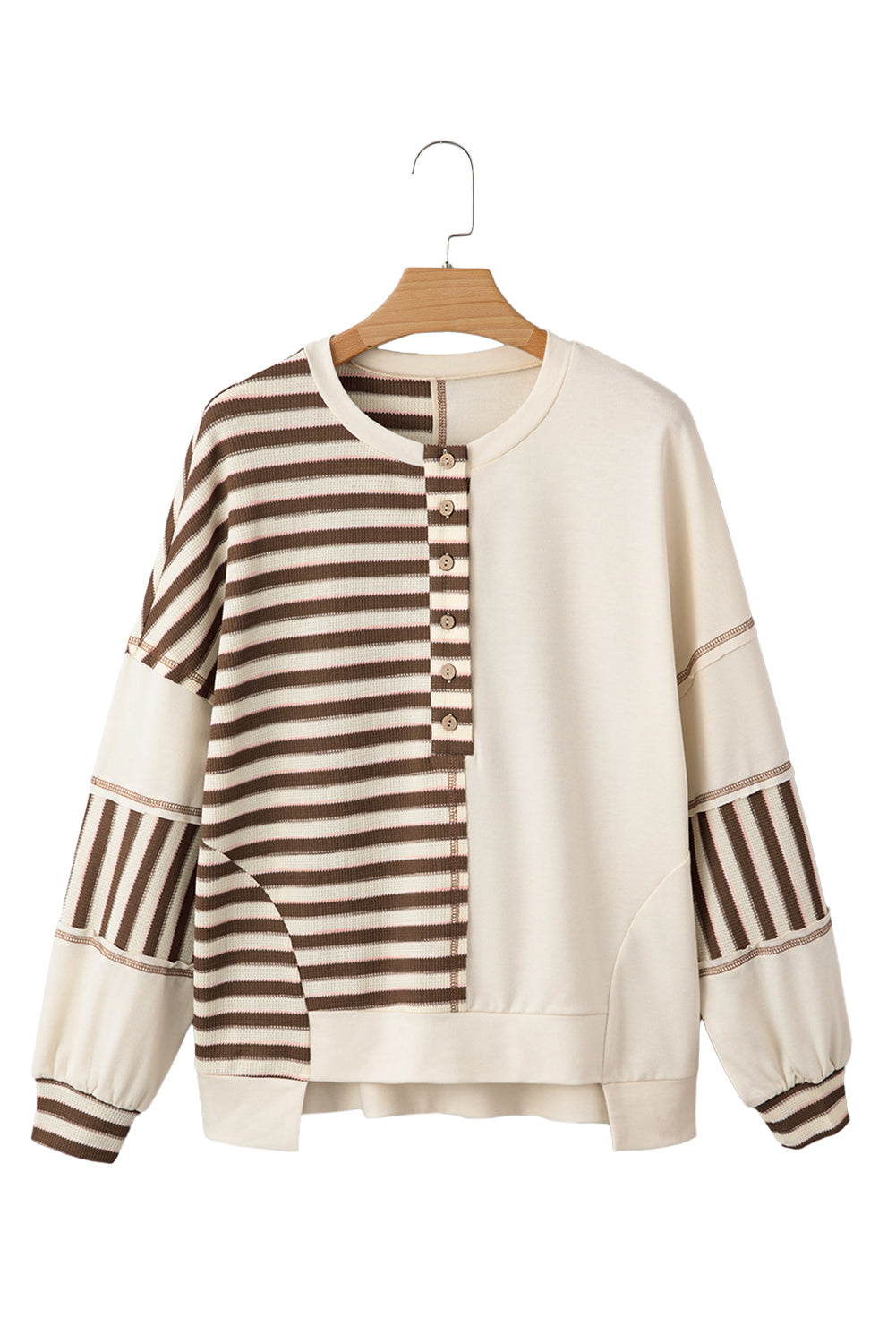 - The patchwork design adds a unique touch to this top, creating a modern and eye-catching look that sets it apart from ordinary pullovers.