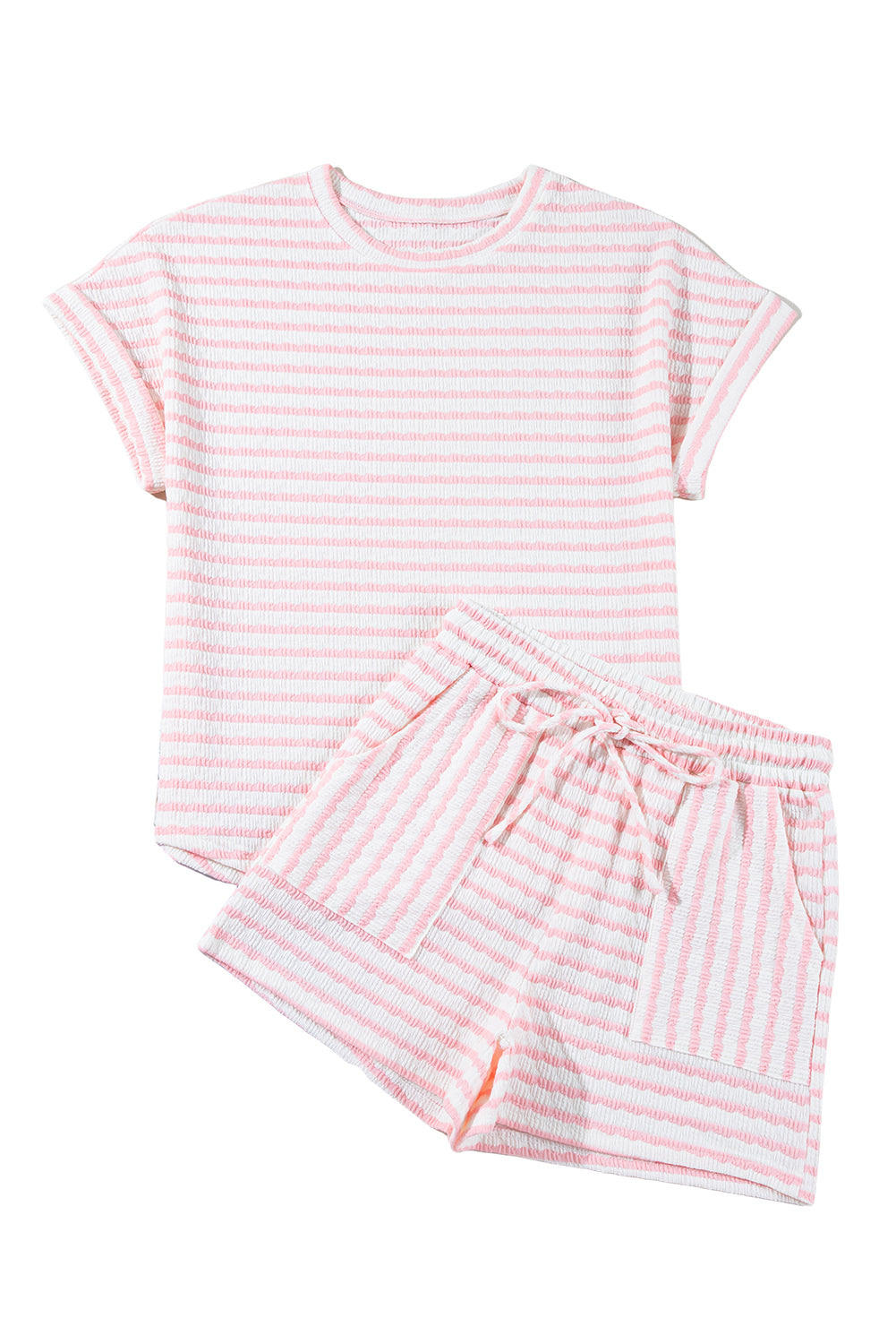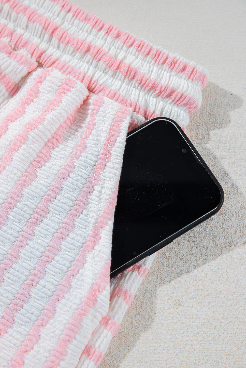 Pink Striped Short Sleeve Top and Pocket Shorts Set