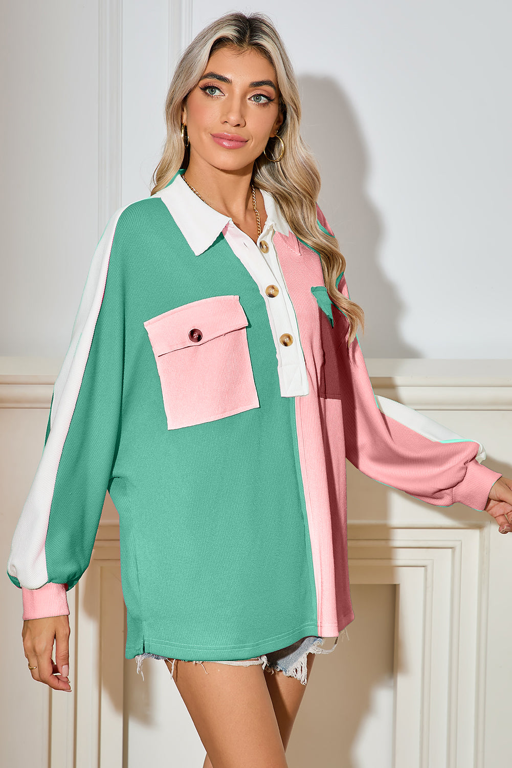 • Featuring a Henley neckline with buttons and a convenient pocket detail, this sweatshirt offers both functionality and fashion-forward appeal.