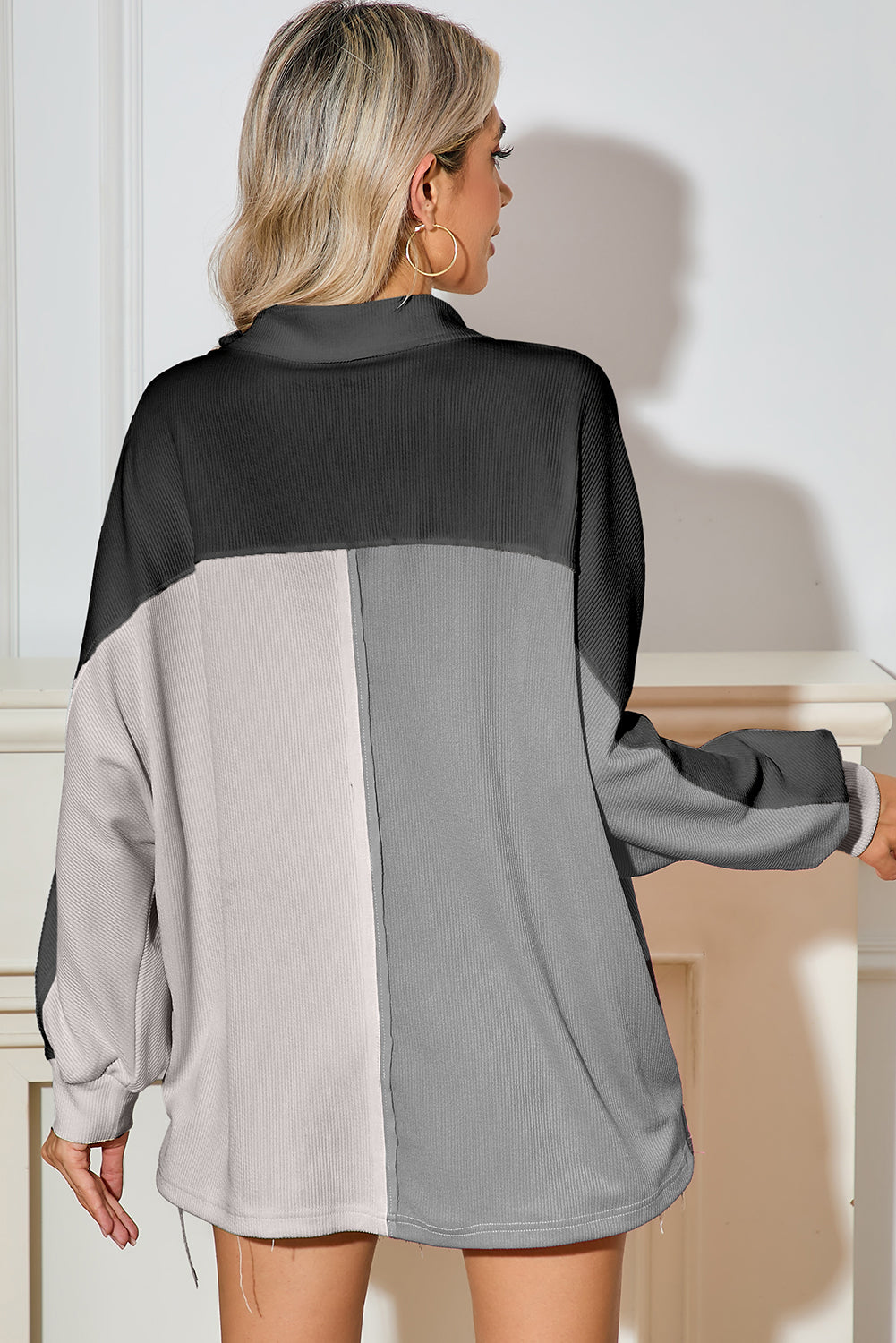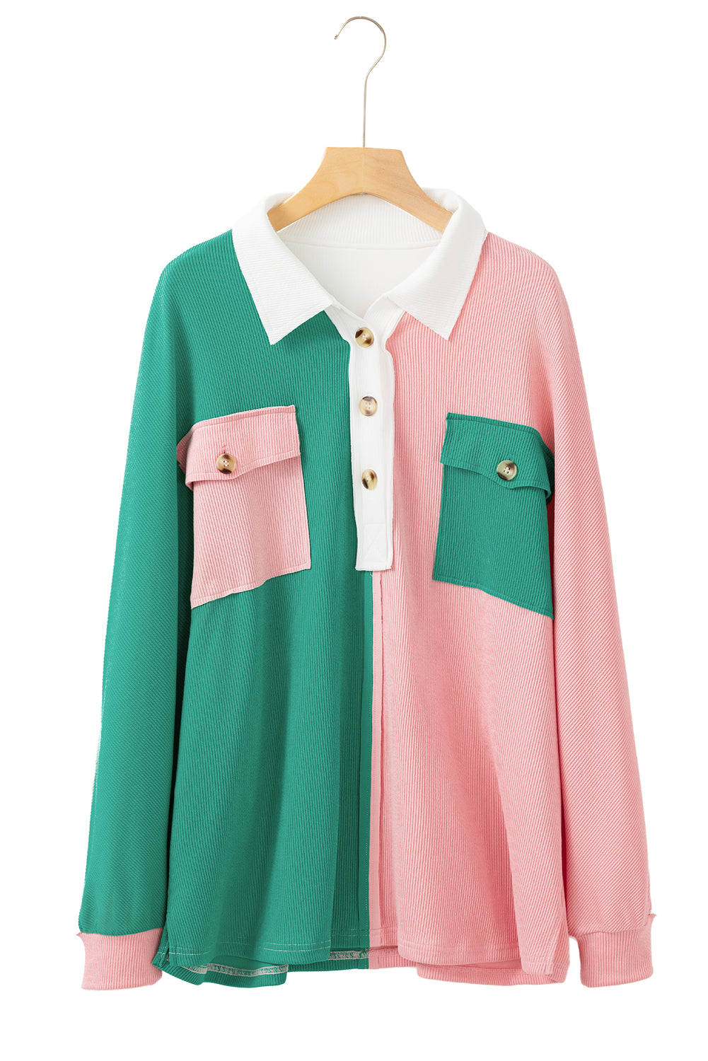 • This sweatshirt combines a bold color palette with a cozy ribbed texture, perfect for a stylish yet comfortable look.