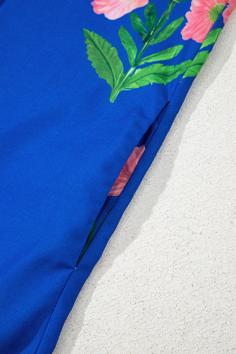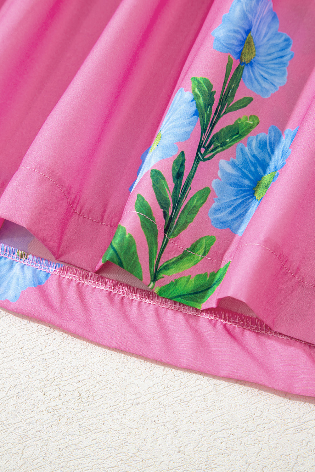 - Embrace vintage vibes with our mini dress featuring charming floral prints and a split neck design.