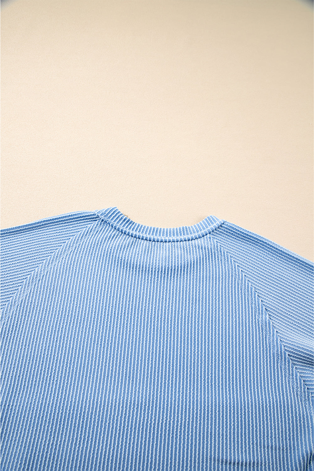 Sky Blue Sleeve Pullover Ruffle Mini Skirt Set