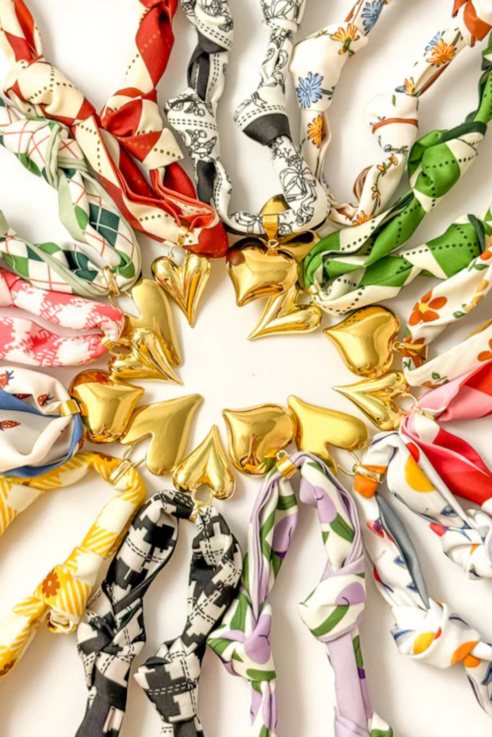 White Boho Floral Print Heart Pendant Scarf Necklace